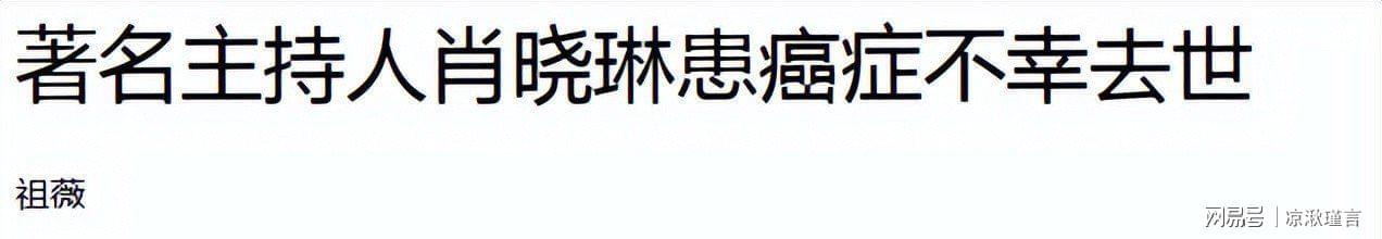 竞彩足球-央视主持人肖晓琳美国家中去世,临终26字遗言太深刻